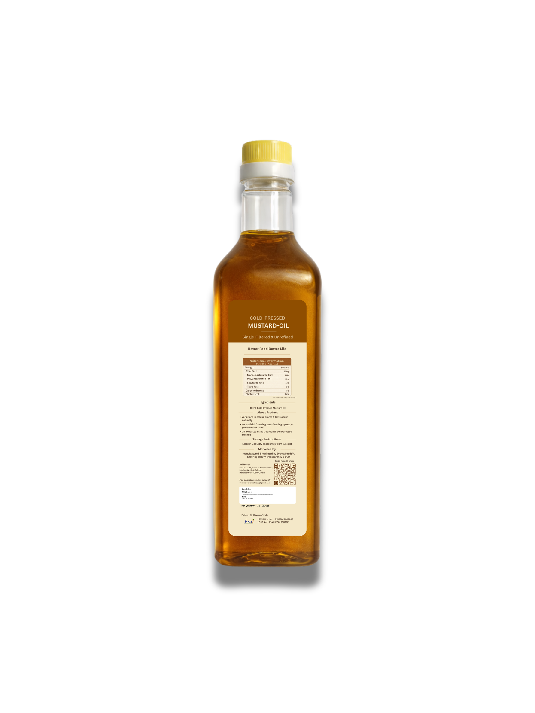 Buy Cold Pressed Mustard Oil 1 L by Svarna Foods.